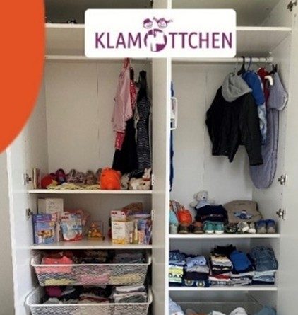 Unser „Klamöttchen-Schrank“ steht im Spielraum im 1. OG und funktioniert ganz einfach auf Spendenbasis.
